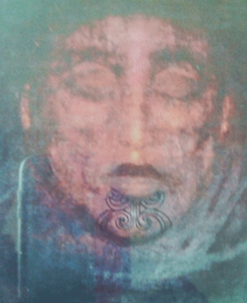 In the weeks following, my husband and others made reference to the male image of Jesus and were intimidated, exclaiming, “the eyes are open and following me!” She was my maternal great-grandmother from Tūwharetoa-Taupō (tribal area), a strong female figure, eyes closed and wearing a moko kauae (female chin tattoo). I had never seen her in the flesh (nor in a photograph), but later, when comparing my artwork to a photo of her, complete with moko kauae, I was able to confirm the connection. I was then compelled to create another picture. The image that emerged was symbolic of my Māori/Danish maternal grandmother, who died aged 33. She is buried in the Bay of Islands, not at her hapū (birthplace) in Taupō. Through art-making, I gained insight into the reunion of my great-grandmother and her daughter beyond this life and felt their presence watching over me. This strengthened my resolve to stay firmly focused on remaining at university. I graduated with a Bachelor of Arts (Religious Studies) in 2001, with my first mokopuna (grandchild) by my side. My mokopuna’s birth, together with images of tīpuna wairuatanga (ancestor spirituality) in my art, was the catalyst for me to be the constant in his life and surround him with whānau support.