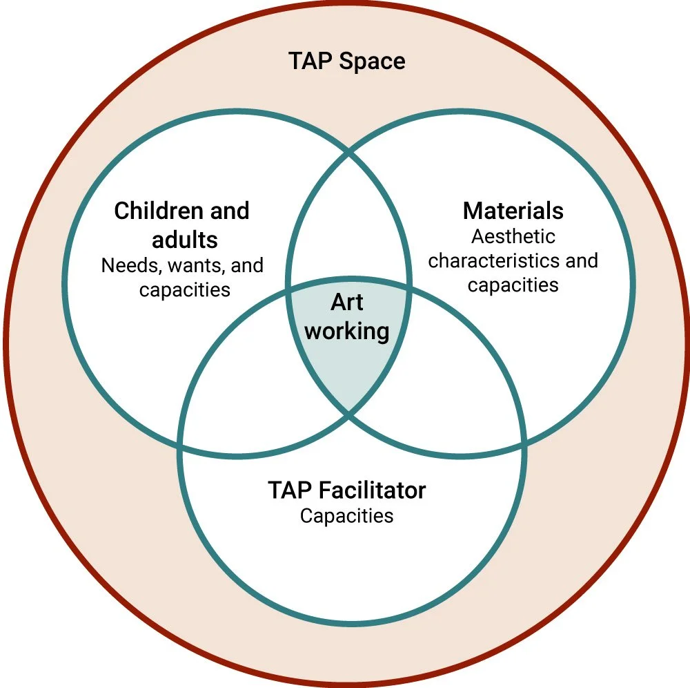 This article begins by exploring the role, power, and vitality of art in education. It then introduces the TAP program, detailing its origins, and outlining a research study that examined and evaluated its initial implementation in early learning settings. Following this is a consideration of the specific practices and principles of TAP as it was researched and continues to be applied. A summary then highlights the program’s key frameworks, patterns, and rituals. The article proceeds to explore how TAP evolved across different educational contexts, outlining the benefits observed in these settings. The paper concludes with a reflection on the ethical considerations needed for a healthy, effective TAP program.