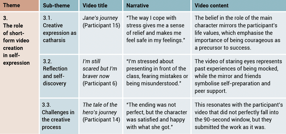 Table 3. Themes, sub-themes, video title, narrative, and video content – The role of short-form video creation in self-expression