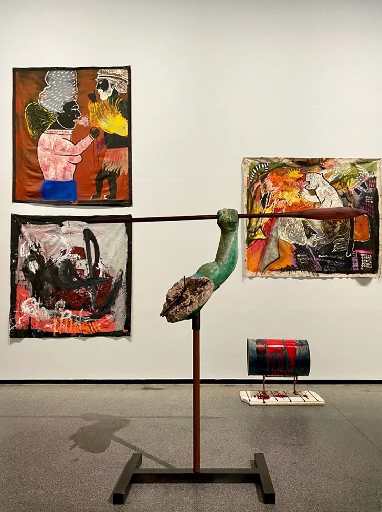 As we moved through the spaces, traditional markings began to merge with more contemporary techniques of expressive painting, assemblage and installation. Poetry appeared alongside the imagery, adding context and conviction.