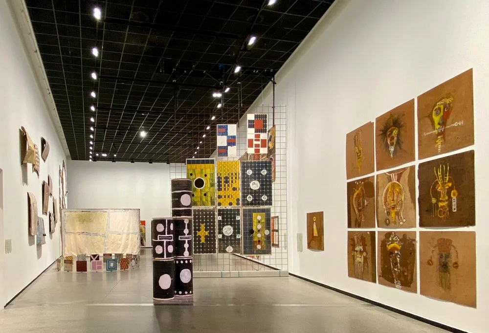 Figure 5. The main hall with several works including The (Solar) Reactor series on solar panels by Lindsay Nelson Jakamarra and Rupert Betheras, and The Watchers series by Joseph Williams Jungarayi, 2024.